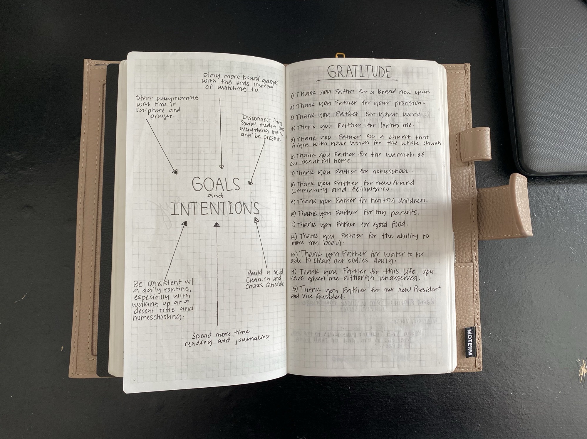 So I started off with a cover page, again simple with minimal decor. And then I did a goals and intentions page, which if I’m honest, I hadn’t even referenced it again until today. I really don’t think I’ll be doing this anymore moving forward. Then I added a Gratitude section. I normally keep my gratitude log in my journal, but since I will be using this planner more than my journal, I decided to insert it in here. I only wrote on this page about half of the month, but I enjoyed having a page to reflect on whenever a thought of gratitude came to mind.