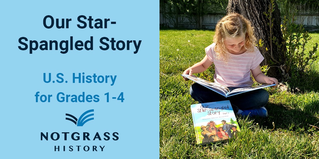 We’re continuing with Notgrass Our Star Spangled Story. It’s engaging and works well across multiple ages. We read together, then follow up with a video on YouTube, an activity page from the student book and a chapter from the assigned read aloud.