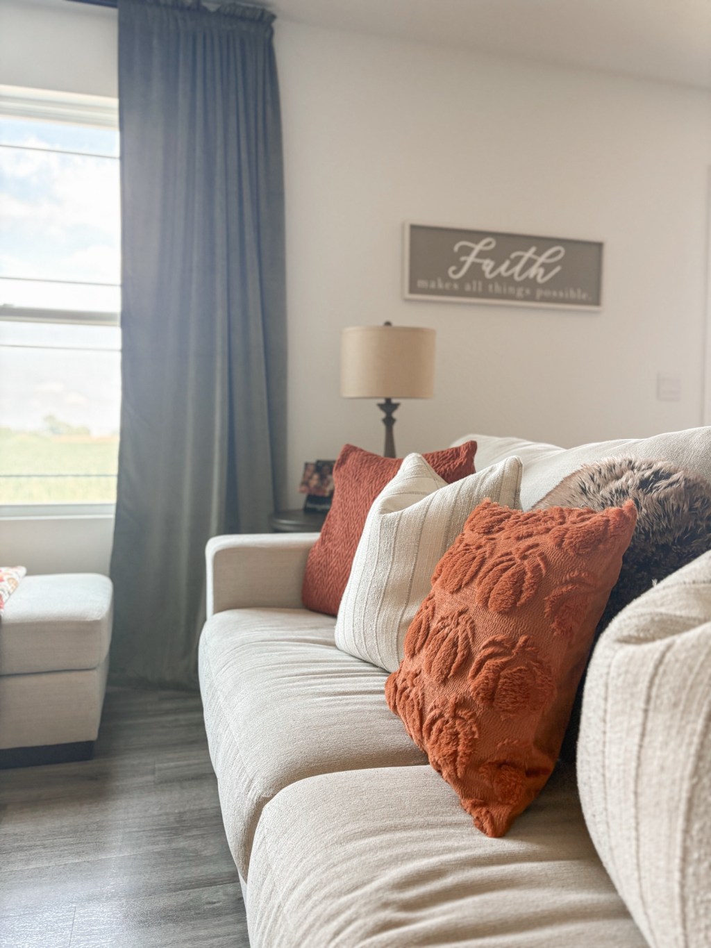 One of my favorite things to do as we transition from Summer to Fall is to make the house feel cozy and inviting again. I like to slowly bring in the warmer textures, blankets, and autumn scented candles to create a peaceful atmosphere. Simple touches of Fall make a big a difference. Creating a cozy home doesn’t have to be expensive or overwhelming. It’s really just about setting the tone for a slower season.